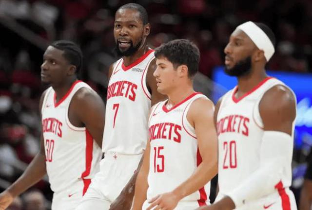 當(dāng)然,小個(gè)球員對(duì)抗大個(gè)球員本就充滿挑戰(zhàn),體能消耗也更大。不過,“死亡五大”陣容并非毫無缺點(diǎn),主要問題是空間感不足?;鸺?duì)內(nèi)的阿門·湯普森、申京和亞當(dāng)斯都不是可靠的空間點(diǎn),使得陣容的空間壓力基本都在賈巴里·史密斯一人身上。在對(duì)陣鵜鶘的比賽中,杜蘭特三分球3投0中,雖然獲得了不少大空位機(jī)會(huì),但手感欠佳,最后選擇中距離出手。接下來就看常規(guī)賽開始后,杜蘭特能否找回三分手感。下一場(chǎng)季前賽對(duì)老鷹,火箭主力不打,會(huì)全力備戰(zhàn)衛(wèi)冕冠軍雷霆。