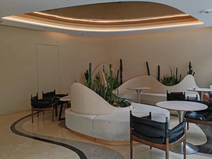 一走進(jìn)店里,就被那股新鮮的感覺吸引住了。店鋪以原木色為主色調(diào),再配上翠綠的綠植,營造出一種靜謐的氛圍。通透的落地窗消除了室內(nèi)和室外的界限,讓顧客在店內(nèi)也能欣賞到窗外的景色。