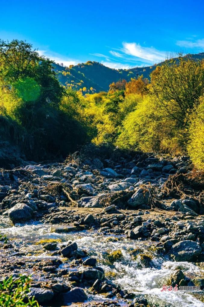 當(dāng)秋意悄然降臨榆中縣的山川溝壑,這里宛如被大自然格外眷顧的調(diào)色盤(pán)。山間的林木漸漸褪去盛夏的濃郁翠綠,換上了金黃與橙紅交織的絢麗盛裝。微風(fēng)輕拂,葉片沙沙作響,仿佛在輕聲訴說(shuō)著秋日的浪漫私語(yǔ)。若有溪流蜿蜒穿梭其中,清澈的水波倒映著兩岸五彩斑斕的樹(shù)林和湛藍(lán)的天空,碎石灘上還殘留著晨露的絲絲涼意,處處充滿了野趣。