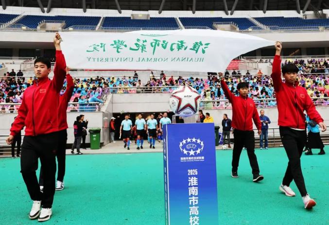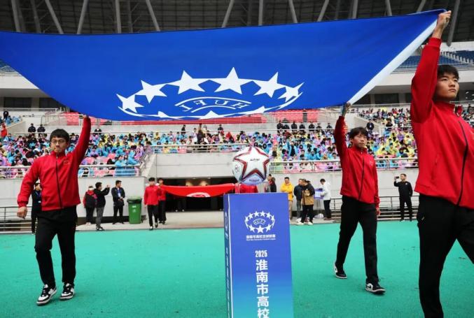 淮南市高校足球聯(lián)賽旗幟入場(chǎng)。