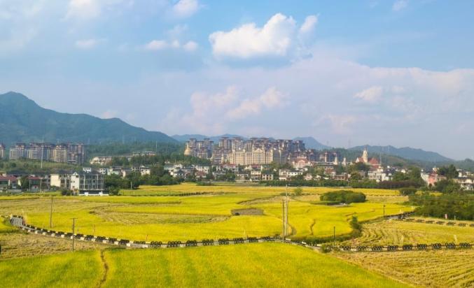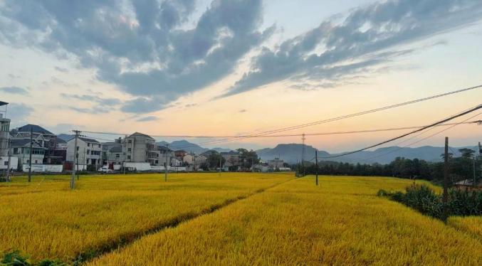 微風(fēng)輕拂,稻浪翻滾,鄉(xiāng)村畫卷在眼前鋪展,稻田整齊分布在村屋四周。漫步在建德鄉(xiāng)村,滿目金黃,聽風(fēng)與稻穗低語,每一口呼吸都滿是田園清甜,如夢如幻。