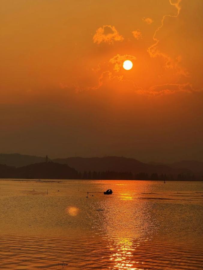 晚霞伴著秋風(fēng),來到三江口,也來到漫步于此的我們身邊??刺炜战鸸忾W爍,江面波光粼粼,打卡“橘子味的三江口”,“含金量”達(dá)到頂峰!
