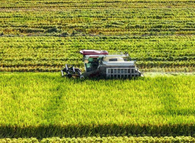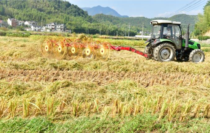 現(xiàn)在正是收割稻田的時候。收割機(jī)在稻浪中留下規(guī)整軌跡,像巨型畫筆為豐收畫卷添彩。那“金色”充滿活力——是谷粒入倉的跳躍之金,是汗水折射陽光的閃爍之金。