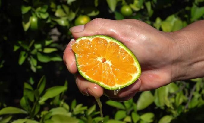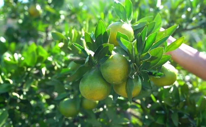 如今三都的橘子大多還是綠色,沉甸甸掛在枝頭。但有些心急的橘子已染上金黃,帶著秋收喜悅,十分可愛。