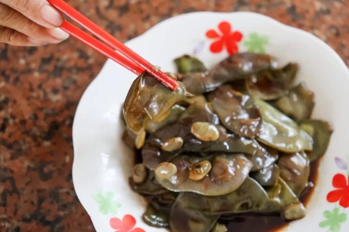 開蓋的瞬間,濃郁的醬香混合著豆香撲面而來,色澤油亮的扁豆看起來格外誘人。費阿嬢笑著說道:“這自家種的扁豆,吃著就是放心,油燜扁豆配米飯,能多吃一碗!”她臉上滿是豐收的滿足與喜悅。