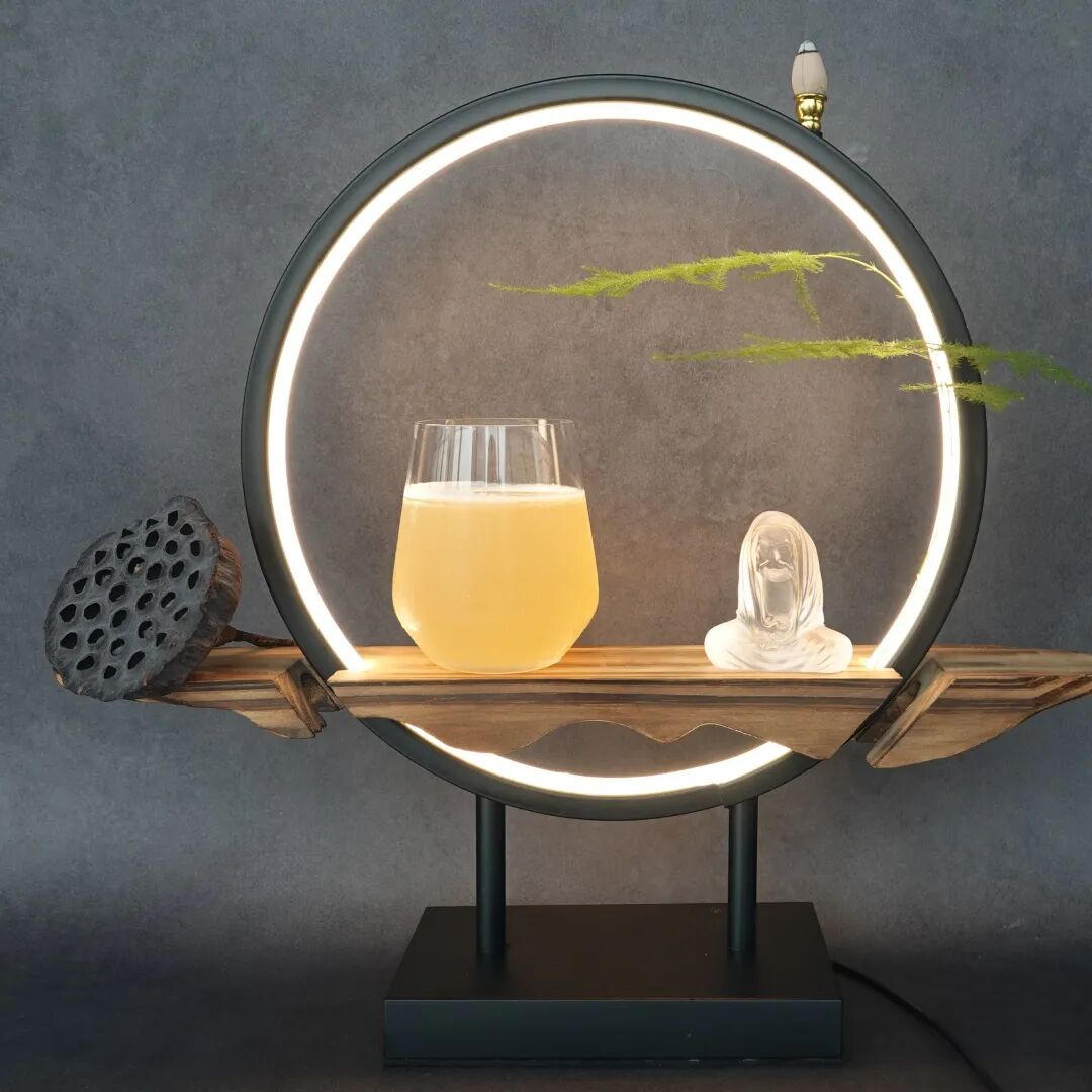 「靈巖般若」:原料有竹瀝水、蓮芯糖漿、綠茶、檸檬片;裝飾有抹茶粉、干冰云霧??诟邢瓤嗪蟾?,禪意清寂。它體現(xiàn)了濟(jì)南長清靈巖寺禪茶文化,干冰營造山間云霧意境,寓意“般若智慧”,飲品層次如參禪悟道。