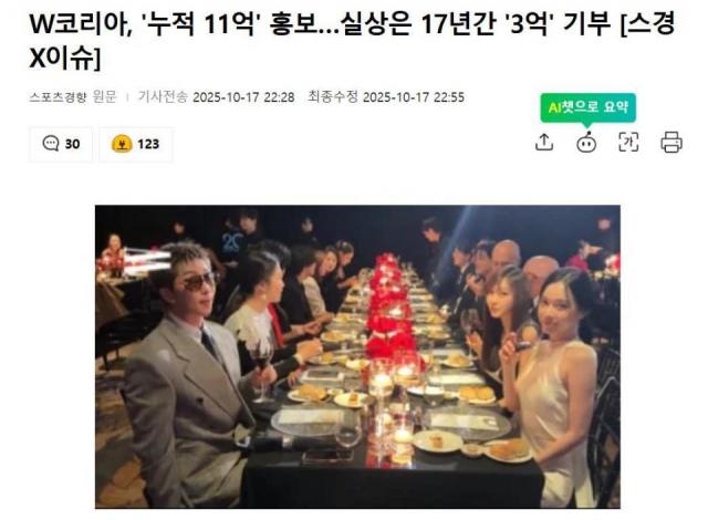 韓國《W Korea》為慈善晚宴風波道歉并刪內容