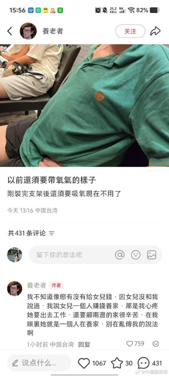 “郭碧婷一人養(yǎng)家”的討論還未平息,郭碧婷父親在社交平臺(tái)的更新,讓這場家庭關(guān)懷與公眾解讀的拉鋸戰(zhàn)再次受到關(guān)注。10月18日,郭碧婷父親曬出一張昔日佩戴氧氣管的照片,配文“剛裝完支架后還需要,現(xiàn)在不用了”,透露出他曾經(jīng)歷過健康危機(jī)。而他在評(píng)論區(qū)對(duì)“女兒一個(gè)人養(yǎng)家”說法的親自澄清,引發(fā)了廣泛關(guān)注。