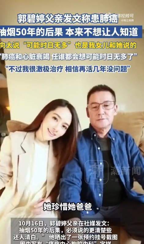 這場風(fēng)波源于數(shù)日前。10月16日,郭父在社交平臺(tái)公布自己罹患肺癌的消息,他認(rèn)為病因是“抽煙50年的后果”,還表示“必須說的更清楚些好還人清白”。面對(duì)重疾,他態(tài)度積極,稱“我現(xiàn)在身體在恢復(fù)中,相信再活幾年沒問題的”,還附上一張“癌癥中心胸腔內(nèi)科”的預(yù)約掛號(hào)截圖,他直面病魔的勇氣令人動(dòng)容。