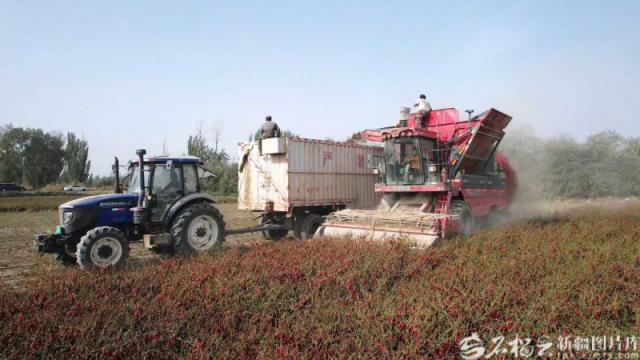 9月3日,新疆新研牧神科技有限公司自走式辣椒收獲機在焉耆回族自治縣進行辣椒收獲作業(yè)。周敘杰 攝