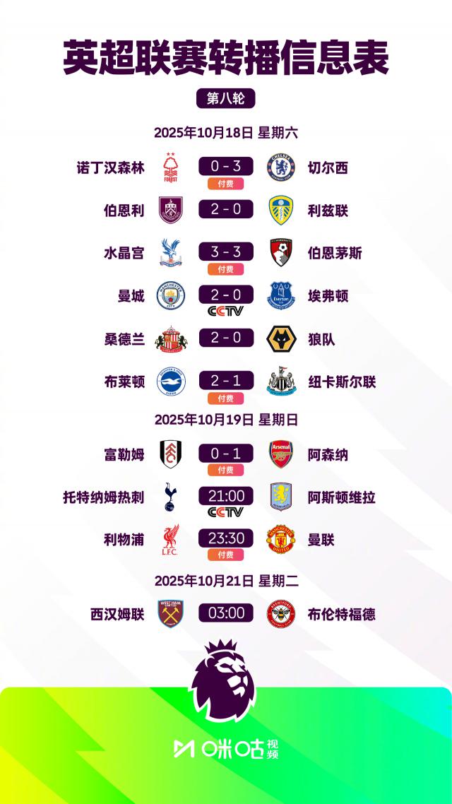 本輪比賽具體賽果如下:諾丁漢森林 0 - 3 切爾西、伯恩利 2 - 0 利茲聯(lián)、水晶宮 3 - 3 伯恩茅斯、曼城 2 - 0 埃弗頓、桑德蘭 2 - 0 狼隊(duì)、布萊頓 2 - 1 紐卡斯?fàn)柭?lián)、富勒姆 0 - 1 阿森納。