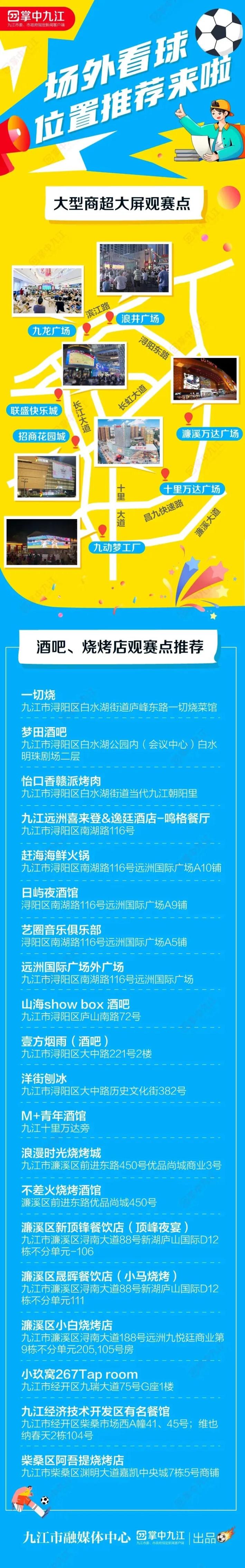要是覺得手機直播觀看不過癮,九小布也幫你打聽好了,有地方安排了大屏觀看。