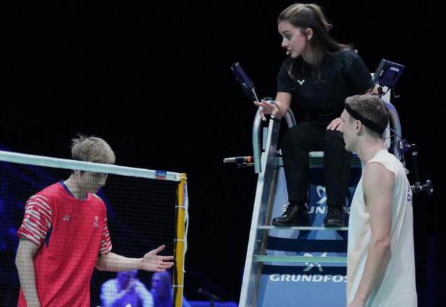 最終,安塞龍以21 - 17贏下第二局。第三局開始前,安塞龍到場邊換了一個新球,這一舉動引發(fā)了他與石宇奇的再次爭執(zhí)。丹麥主場的觀眾紛紛對石宇奇發(fā)出噓聲,裁判對兩名選手都進(jìn)行了警告。