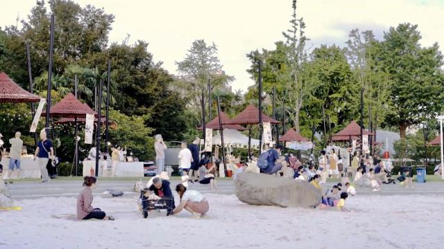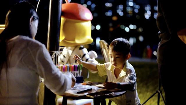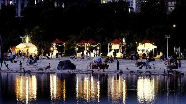 活動(dòng)期間,這里化身為“秋尚潮樂薈”——白天是“沙灘拾樂集”的樂園,沙包游戲、面部彩繪、非遺絨花、中藥香囊等互動(dòng)體驗(yàn)讓每位游客從“看客”變身“參與者”;當(dāng)日落熔金,沙灘Live音樂會(huì)、露天電影、音樂噴泉、VR體驗(yàn)相繼登場(chǎng),藝術(shù)、光影、湖水與星空交織,再現(xiàn)“不夜大寧”的浪漫盛況。