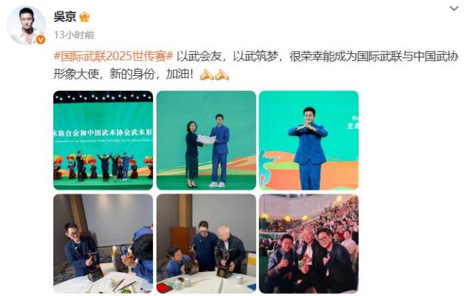 同日,吳京發(fā)微博回應自己的新身份:“以武會友,以武筑夢,很榮幸能成為國際武聯(lián)與中國武協(xié)形象大使,新的身份,加油!”
