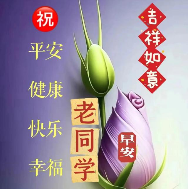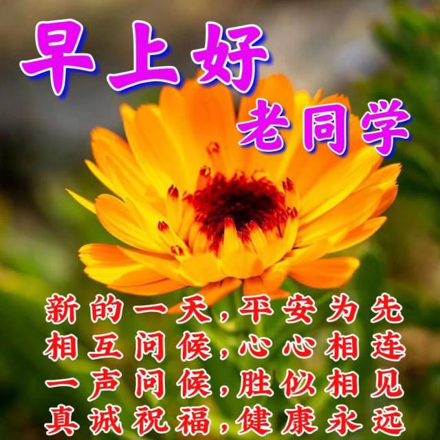 老同學(xué),真心祝福你,生活雖平淡,卻能天天開(kāi)心。早上醒來(lái)笑一笑,中午美美睡個(gè)美容覺(jué),晚上煩惱都跑掉,明天生活更美好,幸福永遠(yuǎn)把你繞!早上好呀!