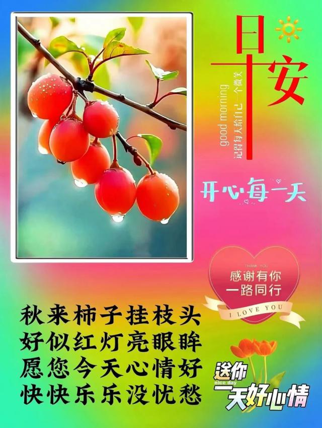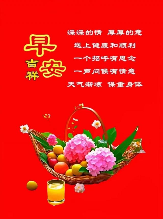 金秋美景如畫,花果絢麗多姿,人生緣分動人。在這清晨,送上最誠摯祝福,愿你心態(tài)健康、陽光滿溢,早安吉祥!