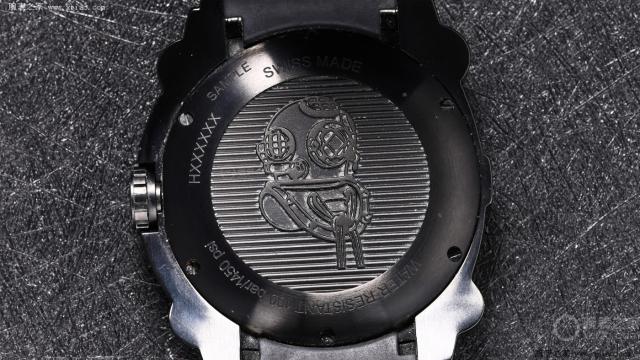機(jī)芯搭載漢密爾頓 H - 10 自動(dòng)機(jī)械機(jī)芯,每小時(shí)振蕩 21600 次,配有 NivachronTM 擺輪游絲,有一定抗磁性能,動(dòng)力儲(chǔ)備 80 小時(shí)。表背不是背透底蓋,但鐫刻了潛水面罩圖案,呼應(yīng)了潛水表的特性,十分獨(dú)特。
