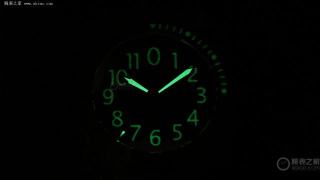 表盤保持了粗糲質(zhì)感,黑色盤面和指針打磨后有顆粒感。時(shí)標(biāo)是灰色大號(hào)數(shù)字,不用擔(dān)心讀時(shí)困難,時(shí)標(biāo)和時(shí)針上都涂有 Super-LumiNova 夜光物料,保證了在黑暗環(huán)境下看時(shí)清晰。