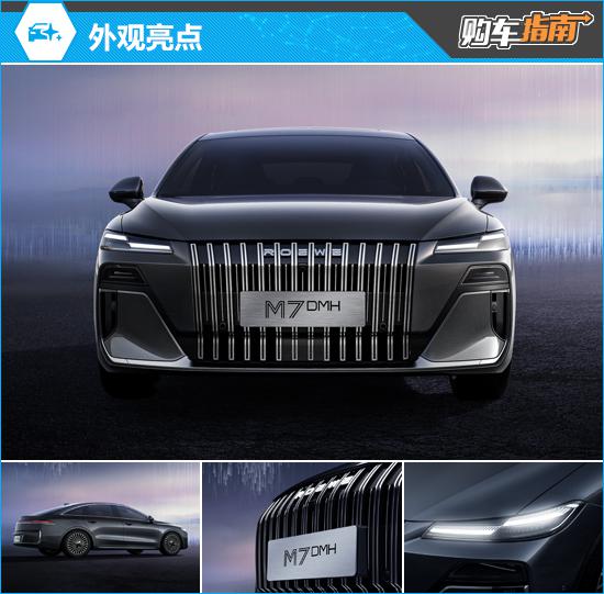 榮威 M7 DMH 由前勞斯萊斯設(shè)計師約瑟夫 · 卡班操刀,融合直瀑式前格柵、光軌日行燈、榮耀迎賓光毯等豪華元素,被稱為“國產(chǎn)小勞斯萊斯”。前臉造型厚重,雙線鍍鉻飾條填充的前格柵盡顯莊重典雅?!癛OEWE”字母可點亮,搭配分體式大燈組和矢量光軌日行燈,夜間辨識度極高。