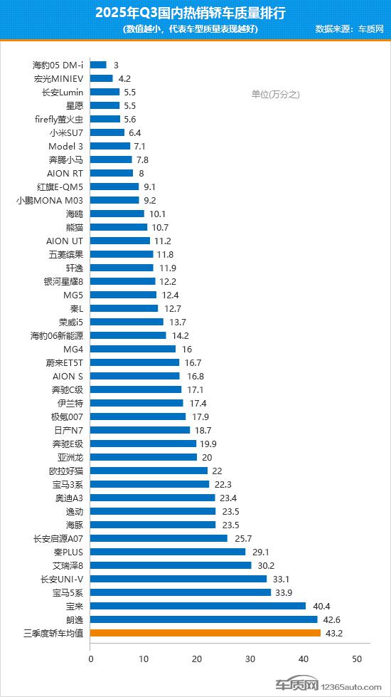 2025年三季度國內(nèi)熱銷轎車質(zhì)量情況排行分析