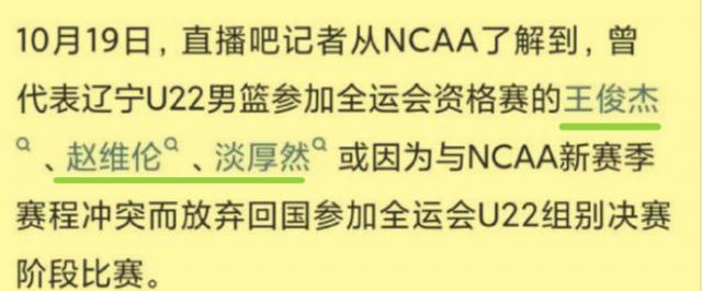 此外,遼寧U22男籃簽下的3名臨時工王俊杰、趙維倫和淡厚然,因賽程與NCAA聯(lián)賽重疊,或將“拒絕”繼續(xù)代表球隊參加全運會決賽。算上正在日本B3聯(lián)賽打球的任序航,共有8名球員離隊。