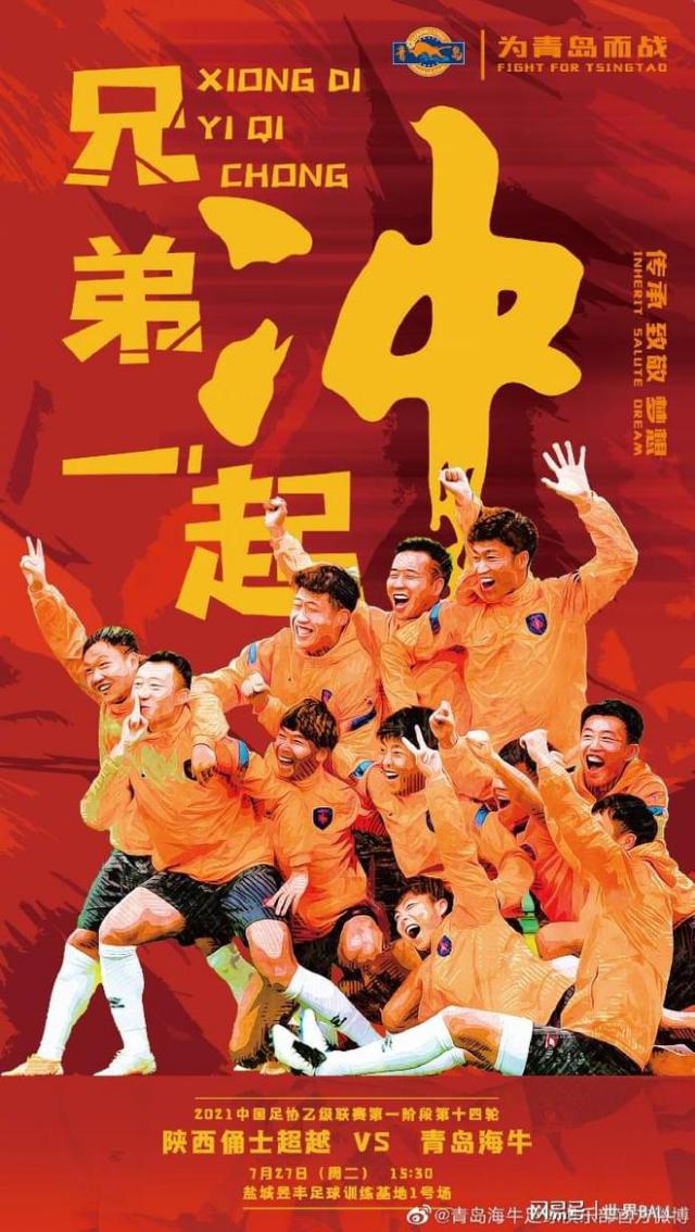 這是球隊(duì)官方微博 2021 年 7 月 27 日的圖片。圖中出現(xiàn)了兩版隊(duì)徽:圖片右上角“為青島而戰(zhàn)”左側(cè)是新隊(duì)徽,球員們外套上是舊隊(duì)徽,而且是理論上隔了 2 版的隊(duì)徽。有可能是舊圖新用,但官微 2021 年 6 月 9 日的圖片中,球員身上仍是老隊(duì)徽,這就很耐人尋味了。