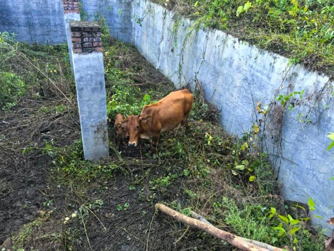 消防員到場(chǎng)后發(fā)現(xiàn),一頭母牛和一頭牛犢掉進(jìn)了一個(gè)干枯的蓄水池,無法自行走出。