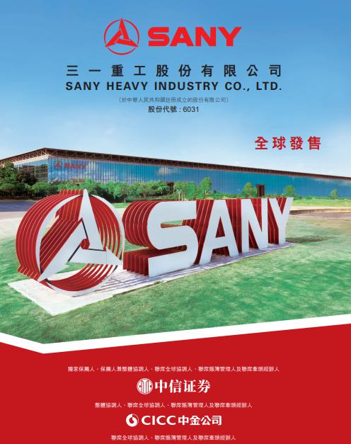 中國工程機(jī)械企業(yè)三一重工 ( 06031 ) 從今日起至周四 ( 10 月 23 日 ) 進(jìn)行招股,此次將發(fā)售 5.8 億股 H 股,其中香港公開發(fā)售部分占 10%,其余為國際配售。每股招股價在 20.3 港元至 21.3 港元之間,最多可集資 123.63 億港元。該股預(yù)計 10 月 28 日掛牌買賣,中信證券擔(dān)任獨(dú)家保薦人。