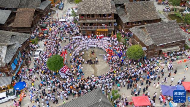 △這是2024年7月20日在貴州省黎平縣雙江鎮(zhèn)黃崗村拍攝的 “喊天節(jié)”活動現(xiàn)場(無人機照片)。新華社發(fā)(龍建睿 攝)