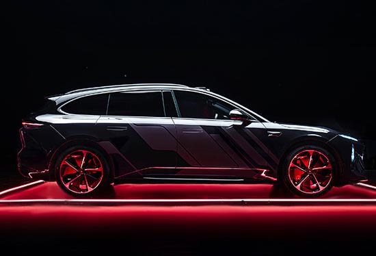 側面是標準的旅行車結構,搭配全新的20英寸五輻式風速輪轂,內置“氣輝橙”制動卡鉗,該套裝價值13000元。另外,蔚來ET5T暗影套裝限定版還標配與冠軍紀念版同款的底盤裝備,像前后防傾桿升級,抗扭剛度提升6%,還有專屬的運動化底盤調校以及EP Mode模式。