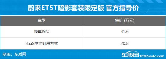 蔚來ET5T暗影套裝限定版上市,售價31.6萬元來襲