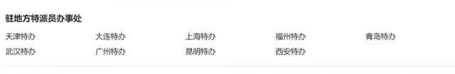 還有部分辦事處通過(guò)官網(wǎng)列出聯(lián)系省份的方式,顯示更新后負(fù)責(zé)聯(lián)系區(qū)域。如商務(wù)部駐上海特派員辦事處聯(lián)系上海市、江蘇省、浙江??;駐福州特派員辦事處聯(lián)系福建省、江西省;駐青島特派員辦事處聯(lián)系山東省、安徽省;駐昆明特派員辦事處聯(lián)系重慶市、貴州省、云南省、西藏自治區(qū)。