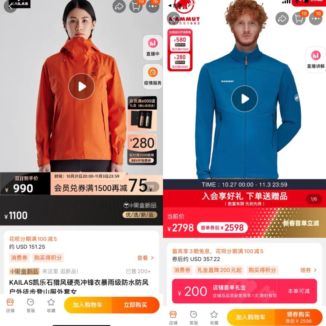 雙十一臨近,沖鋒衣品牌紛紛推出滿(mǎn)減、促銷(xiāo)等活動(dòng)。品質(zhì)國(guó)貨凱樂(lè)石、日本戶(hù)外品牌MONTBELL、瑞典品牌攀山鼠、軟殼鼻祖Mammut等都有較大的折扣力度。