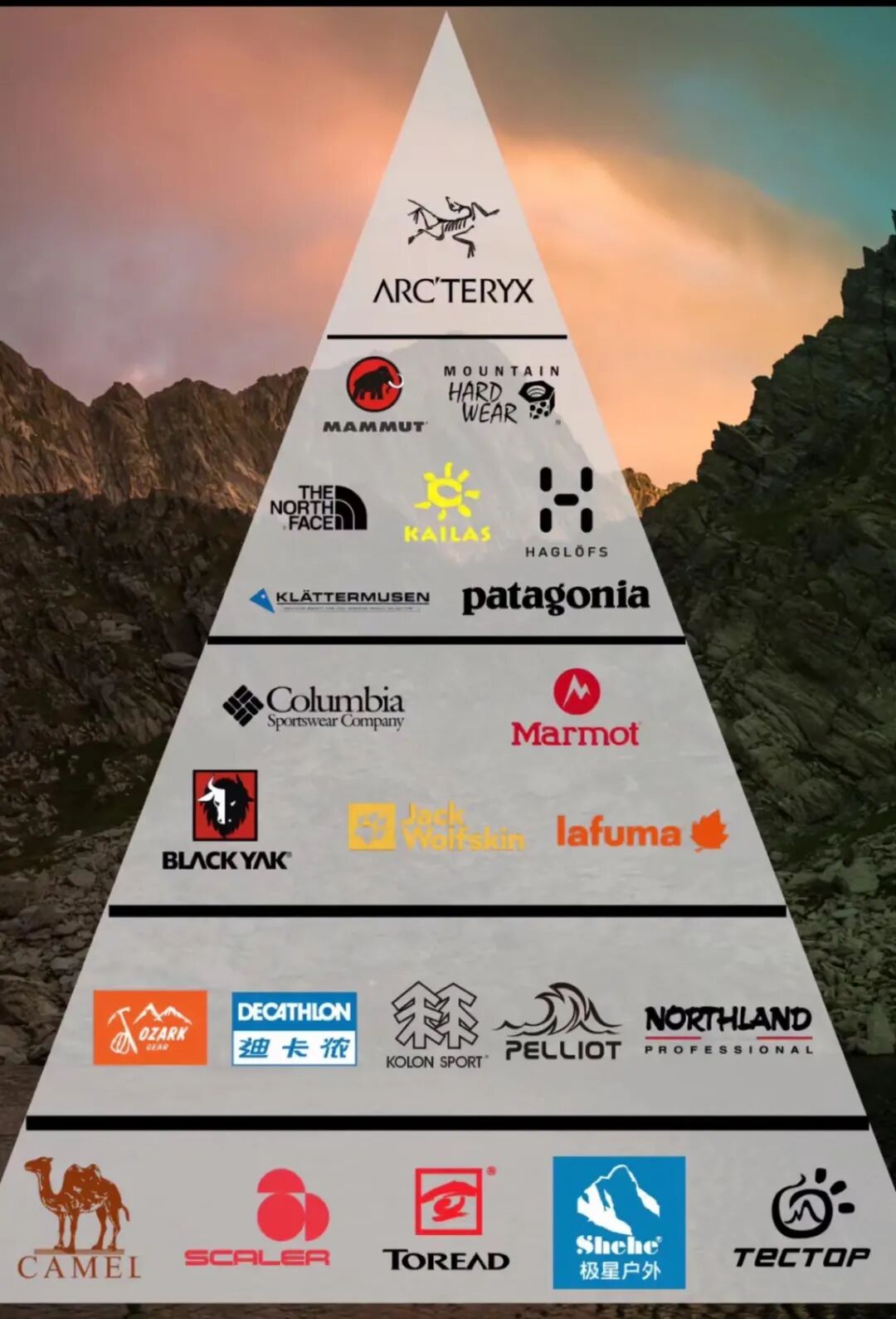 另一方面,「沖鋒衣為什么那么貴」成為很多消費(fèi)者心中的疑問(wèn)。在社交媒體上,各種沖鋒衣品牌的推薦下,首先映入眼簾的是「物質(zhì)主義」主導(dǎo)的「沖鋒衣鄙視鏈」。