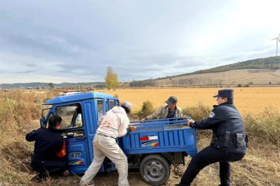 八面通第二派出所加強(qiáng)巡邏防控保障秋收安全。近日,民警巡邏時(shí)發(fā)現(xiàn)一農(nóng)用三輪車在田間搶收糧食時(shí)側(cè)翻,陷于路邊難以脫困,女車主焦急萬分。民警迅速查看狀況,卸下車上農(nóng)作物,合力將車抬起,使百姓秋收順利進(jìn)行。