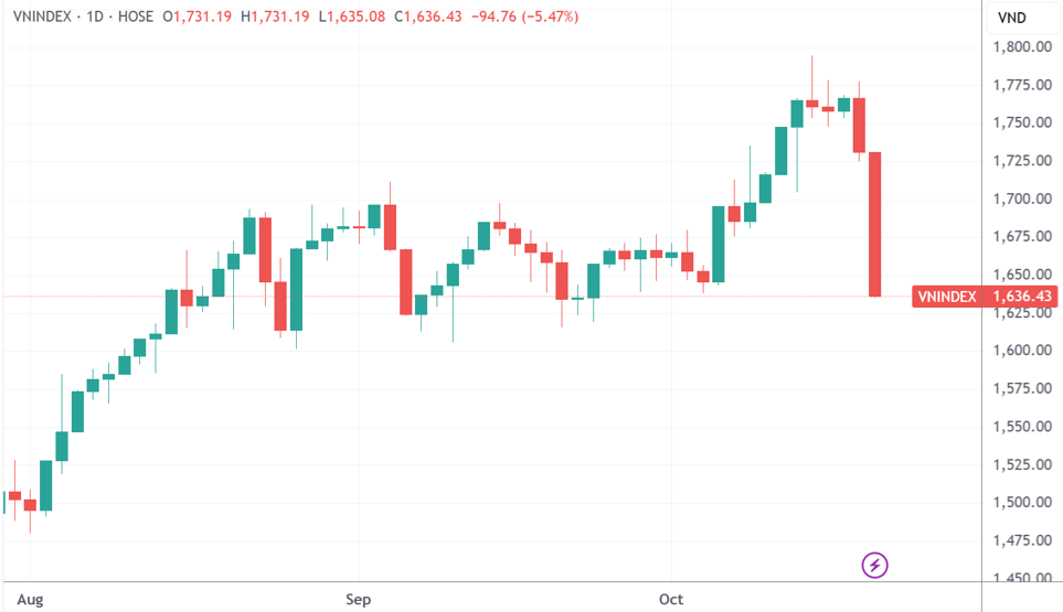 10月20日,受投資者對債券違規(guī)情況擔(dān)憂的影響,越南股市遭遇4月以來最大跌幅。在收盤前最后時刻,越南股市突然跳水大跌,最終基準(zhǔn)胡志明指數(shù)跌幅接近5.5%,創(chuàng)下今年4月初關(guān)稅事件沖擊后的最大單日跌幅。截至收盤,MSCI越南指數(shù)下跌5.85%,胡志明指數(shù)下跌5.18%。