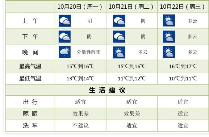 22日最低氣溫降至10℃~11℃