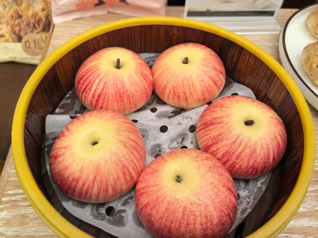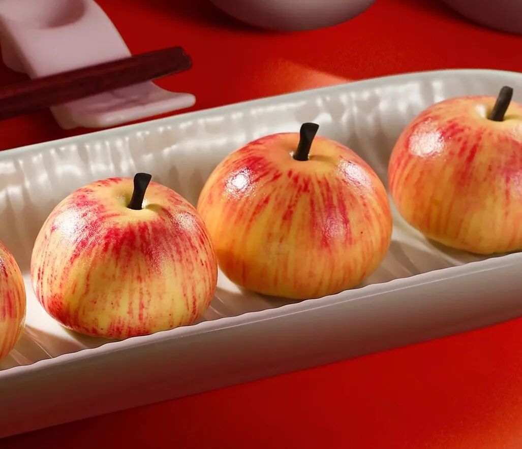 世紀聯(lián)華自有品牌優(yōu)饗提報的“蘋果包”,外觀酷似蘋果,細膩的紋路、形象的果梗,還有山楂餡做的“果芯”,在“漂亮飯”風(fēng)潮下,十分吸睛,獲得眾多評委稱贊。