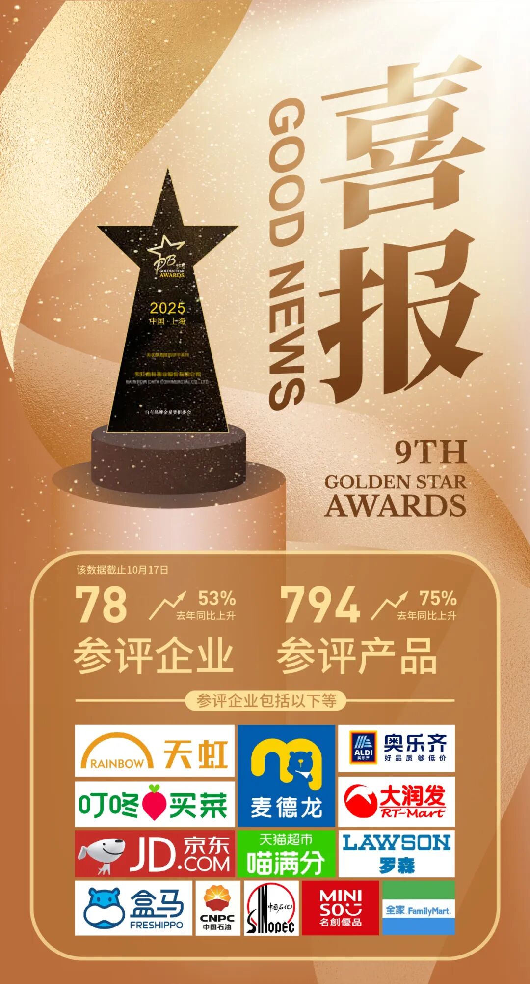 2025年10月17日,第九屆自有品牌“金星獎”線下評審會于上海華納風(fēng)格酒店圓滿舉行。截至10月17日,參與“金星獎”評選的零售企業(yè)達78家,較去年同比上升53%;參評產(chǎn)品共計794件,同比上升75%。當(dāng)天的線下評審會著重對600多款“卓越商品獎”參評產(chǎn)品進行了感官方面的補充評審。
