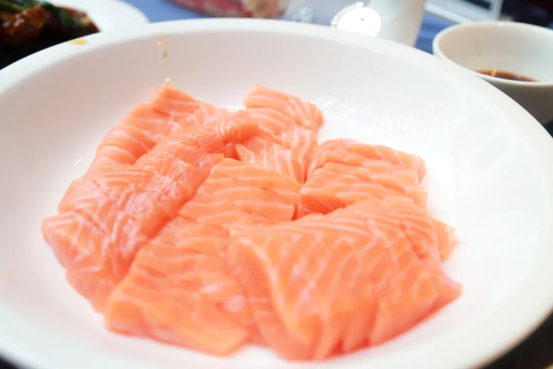 盒馬帝皇鮮提報的冰鮮挪威三文魚魚肉刺身、天貓超市喵滿分提報的冷凍智利三文魚塊、麥德龍麥臻選提報的煙熏三文魚,不同的保鮮技術(shù)處理讓現(xiàn)場評審大飽口福。