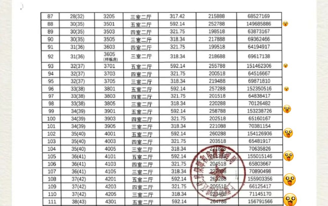 項(xiàng)目一房一價表(部分)