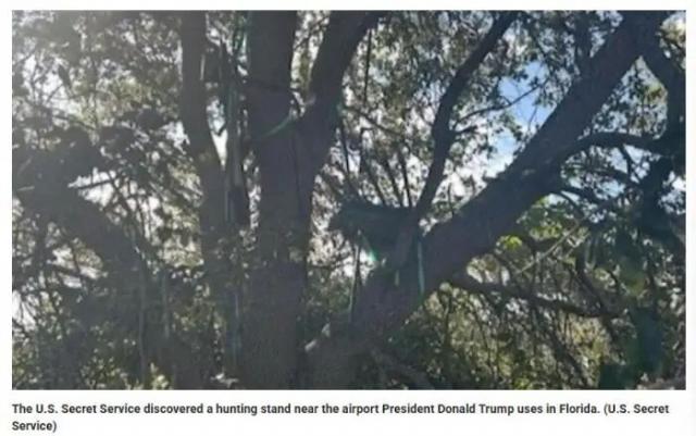 據(jù)中國新聞網(wǎng)綜合美媒報道,美國特勤局在一份聲明中表示,在總統(tǒng)特朗普17日抵達前對相關區(qū)域進行清查時,發(fā)現(xiàn)了一些“可疑物品”。該機構(gòu)并未透露這些物品的具體情況,但分享了一張照片,圖片顯示,樹上似乎搭建了一個可疑“狩獵架”。