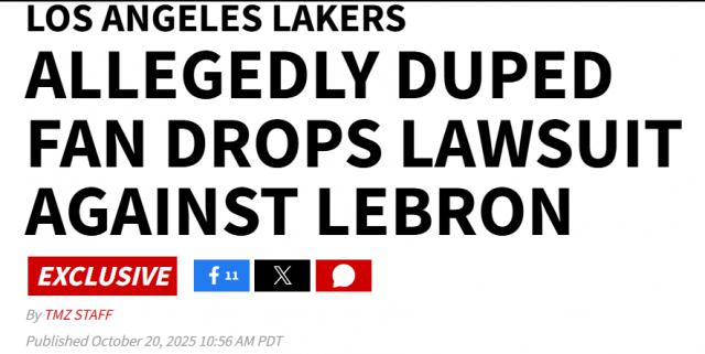 北京時(shí)間10月21日,據(jù)TMZ體育報(bào)道,一名自稱被勒布朗 - 詹姆斯的‘決定2’欺騙并遭受金錢損失的湖人隊(duì)球迷,剛剛申請(qǐng)撤回對(duì)這位NBA巨星的訴訟。