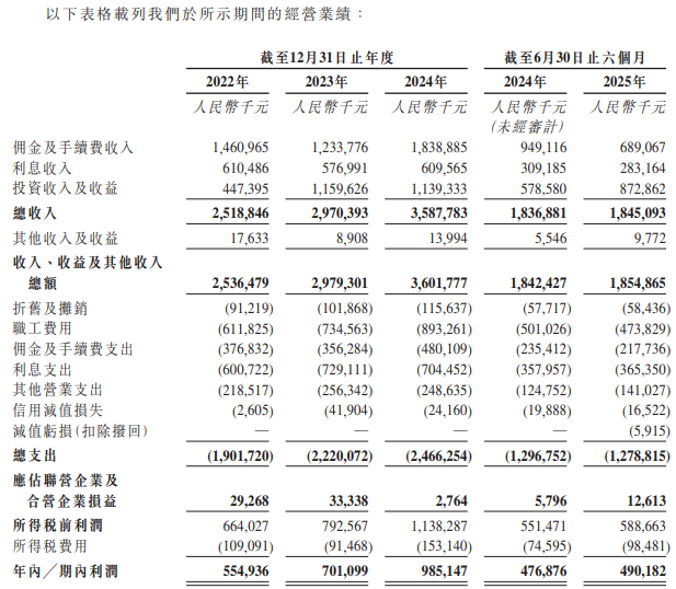 招股書顯示,2023年,首創(chuàng)證券總收入、收益及其他收入同比增加17.5%;2024年,同比進一步增加20.9%;2022 - 2024年近三年年復(fù)合增長率為19.2%。
