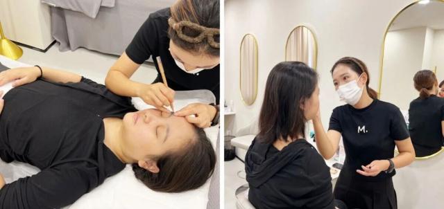 進(jìn)房間后,紋眉師根據(jù)適合和喜歡的眉形開(kāi)始畫(huà)眉。