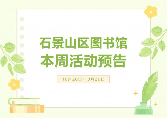 石景山區(qū)圖書(shū)館10月20日 -10月26日有精彩活動(dòng)