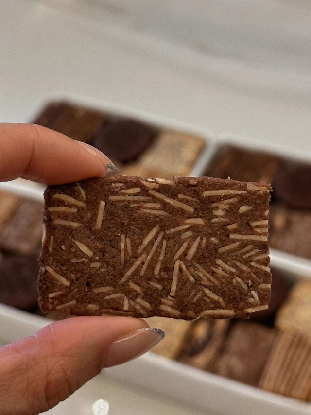 可可杏仁曲奇是絕對的優(yōu)雅之選??煽傻拇己翊钆湫尤实南愦?,層次分明,口感豐富,就像在品嘗一場精致的下午茶,優(yōu)雅又不失風(fēng)味。