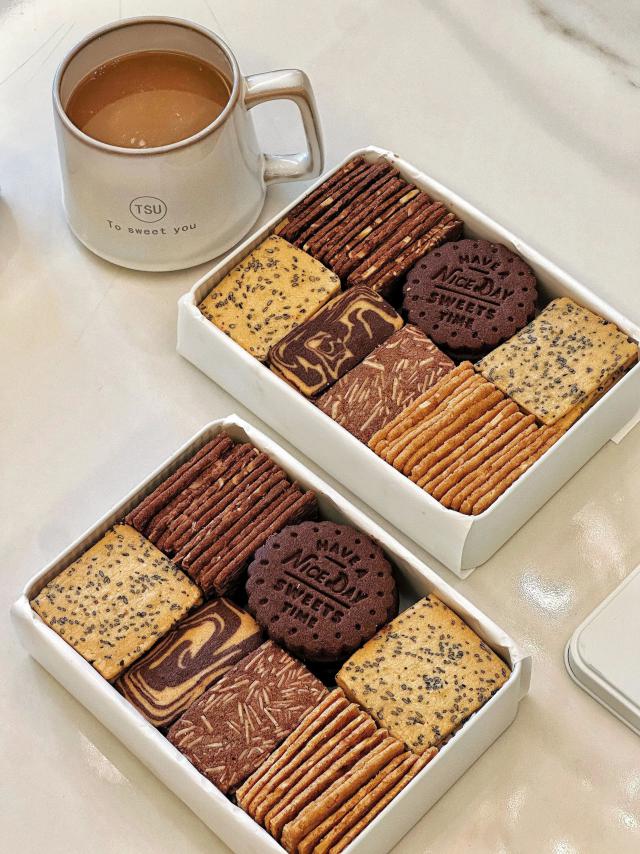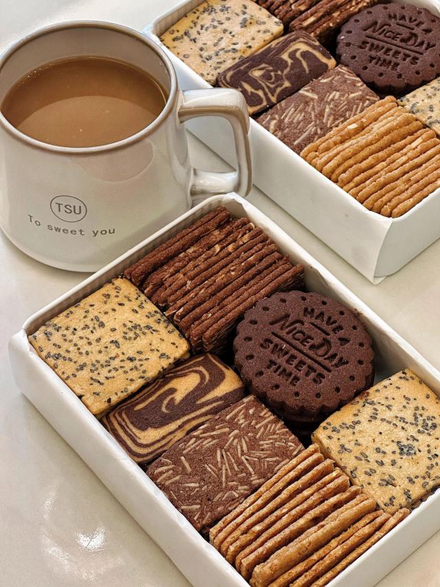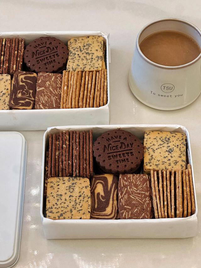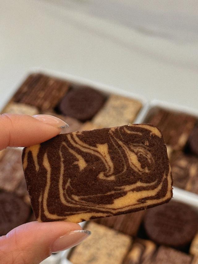 重頭戲大理石曲奇,顏值與美味并存。黑白交錯的紋理就像藝術(shù)品,每一口都充滿了驚喜。奶香與可可的完美結(jié)合,讓人很難不愛,而且拍照也非常出片。