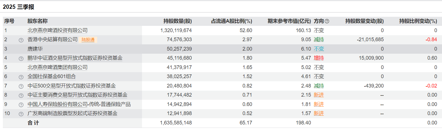 今年前三季度,燕京啤酒營(yíng)業(yè)收入實(shí)現(xiàn)134.33億元,同比增長(zhǎng)4.57%;歸母凈利潤(rùn)為17.70億元,同比增長(zhǎng)37.45%。2025年1 - 9月,公司啤酒銷量(含托管經(jīng)營(yíng))達(dá)349.52萬(wàn)千升,同比增長(zhǎng)1.39%。